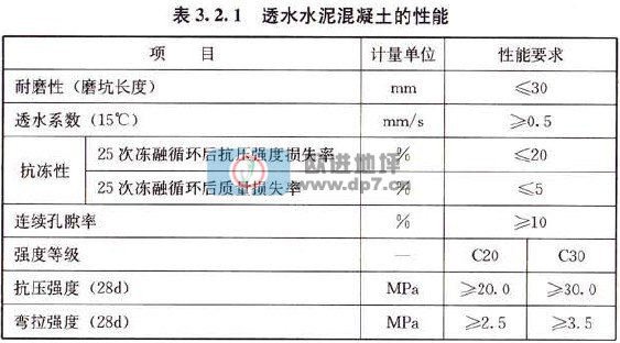3.2. 1透水水泥混凝土的性能應符合表3.2. 1規(guī)定。