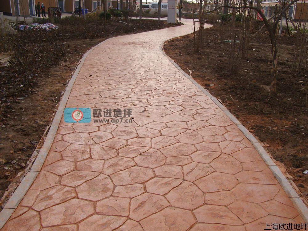 13. 依照參照線壓模之后,迅速取出成型模并有條不紊地按順序壓完所有混凝土的表層。如果施工時遇到有靠墻、邊角或其它不規(guī)則處,可以使用邊角模(軟模),但使用時要注意與整體圖案的一致與協(xié)調(diào)。