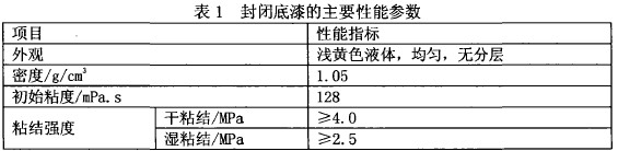 環(huán)氧地坪漆施工材料分封閉底漆、中層膩子材料和無溶劑型環(huán)氧面漆三種,施工時缺一不可。根據(jù)施工環(huán)境條件的特點以及設(shè)計要求,選用符合條件的環(huán)氧地坪漆材料進行施工。所選擇的材料性能參數(shù)分別見表1、表2、表3。