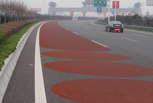 目前道路顏色不是白色就是黑色,長時間注視單調(diào)的黑色路面會使駕駛員注意力變得遲鈍,誘發(fā)疲勞,甚至昏昏欲睡,使發(fā)生交通事故的危險性增大。在路面適當部位著色,可以改善駕駛員的視覺環(huán)境,提醒駕駛員注意特殊路段,刺激駕駛員的神經(jīng)系統(tǒng),有助于駕駛員保持清醒的駕駛狀態(tài)。例如:在陡坡、轉(zhuǎn)彎和限速區(qū)鋪裝黃色路面,則會提高駕駛員的警惕性;在交叉口、居民密集點和停車點附近鋪裝紅色路面,駕駛員則會小心謹慎;在學校、醫(yī)院等處鋪裝藍色路面,表示安靜,則駕駛員就會放輕機器聲并不鳴喇叭。另外合理設計路面色彩的變化,則直線段長些也不會影響安全效果,還會縮短到達目的地的距離,降低工程造價,減少運行時間。