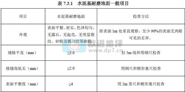 水泥基耐磨地面一般項(xiàng)目的驗(yàn)收應(yīng)符合表 7.3.1 的規(guī)定。