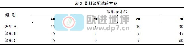 為研究砂的顆粒級(jí)配對(duì)材料性能的影響,我們?cè)O(shè)計(jì)了三組級(jí)配,如表 2 所示。