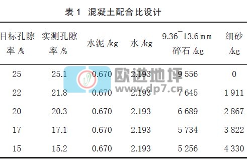 這樣,就可以從降雨量得到滲流量,通過(guò)研究透水混凝土的孔隙率與滲透性的關(guān)系,確定設(shè)計(jì)透水混凝土的目標(biāo)空隙率[10]。