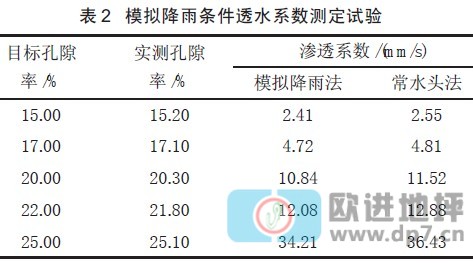 從試驗(yàn)結(jié)果分析,模擬降雨法與常水頭法相比,測(cè)得的滲透系數(shù)均較小一些,并有隨孔隙率的增加,兩者差值增大的趨勢(shì)。